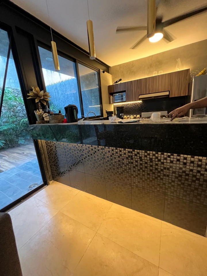 Cocina equipada con barra de granito